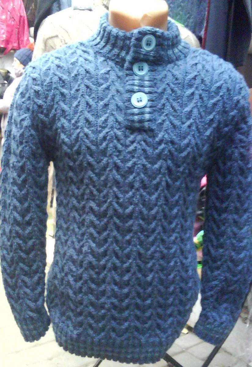 классический мужской свитер с застежкой на пуговицы у горловины цвета морской волны. нарядный теплый уютный и практичный .
