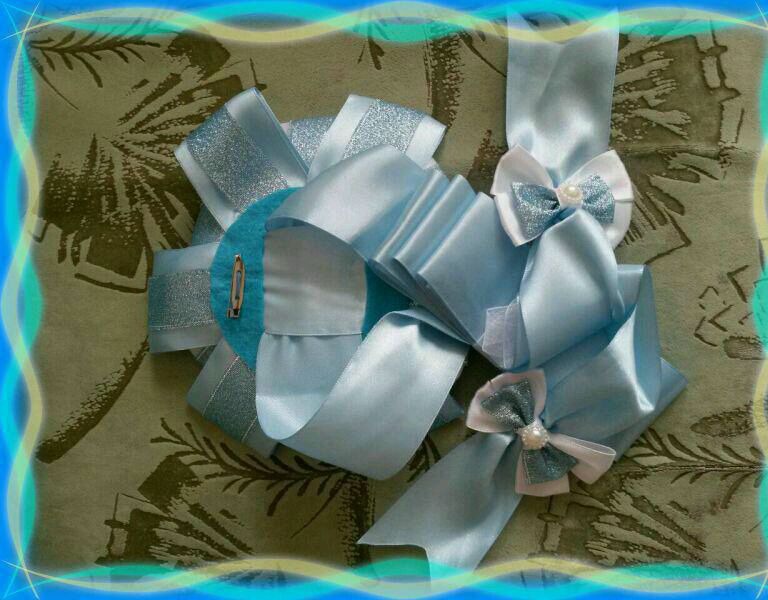 Бант на выписку нежно-голубого цвета с пышным цветком в центре украсит любой конверт на выписку! Бант в диаметре около 20 см. Для декора использована также голубая парча. Ширина лент-завязок-5 см и длина около 3 метров. Лента легко снимается и Ваш бант превращается в красивую брошь на кроватку или коляску Вашего малыша! Брошь для крепления пришита с обратной стороны банта. Возможно изготовить на заказ любого диаметра и цвета. Учту все Ваши пожелания и предложения!