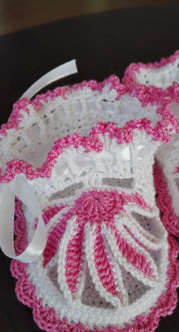 Очаровательные, ажурные, беленькие пинеточки с розовой отделочкой связаны крючком на малышку до 1 г. Размер 10.5 см по подошве. Есть тесемочка для регулировки. Ваша малышка будет неотразима в них