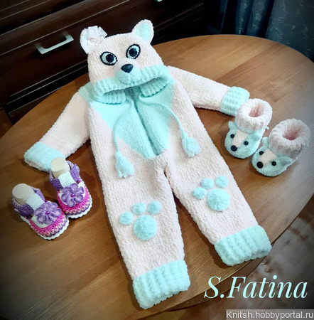 Детские комбинезоны ручной вязки,могут быть дополнены шапочками,пинетки и др.