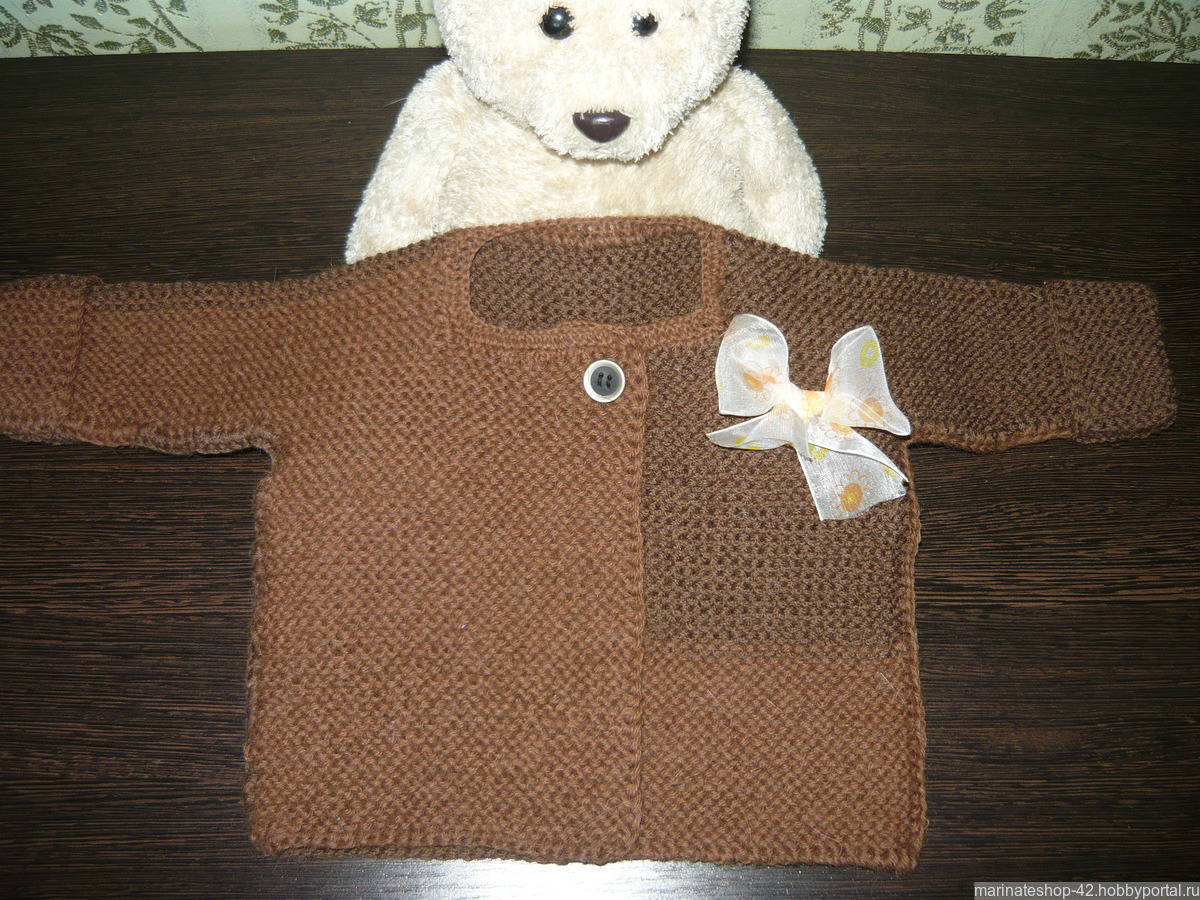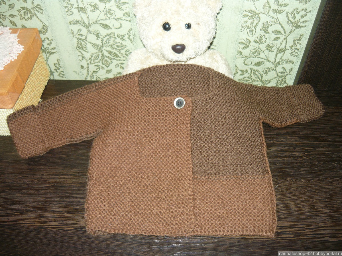 Кардиган для малыша, выполнен из шерстяной пряжи.