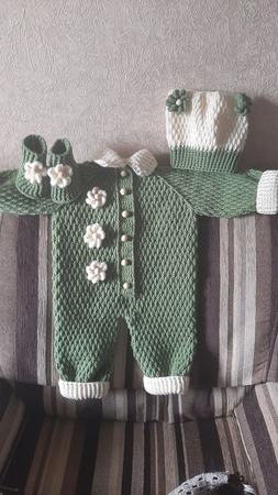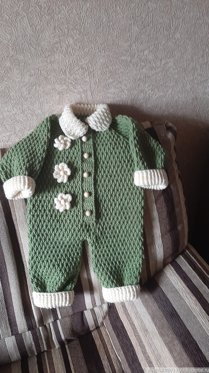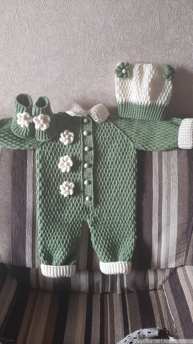 Комбинезоны детские: комбинезон вязаный + чепчик + пинетки