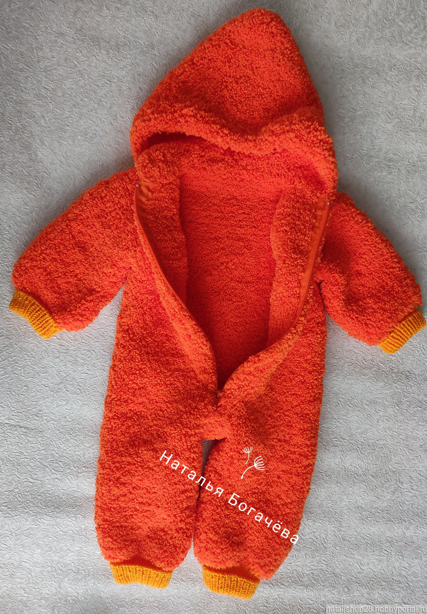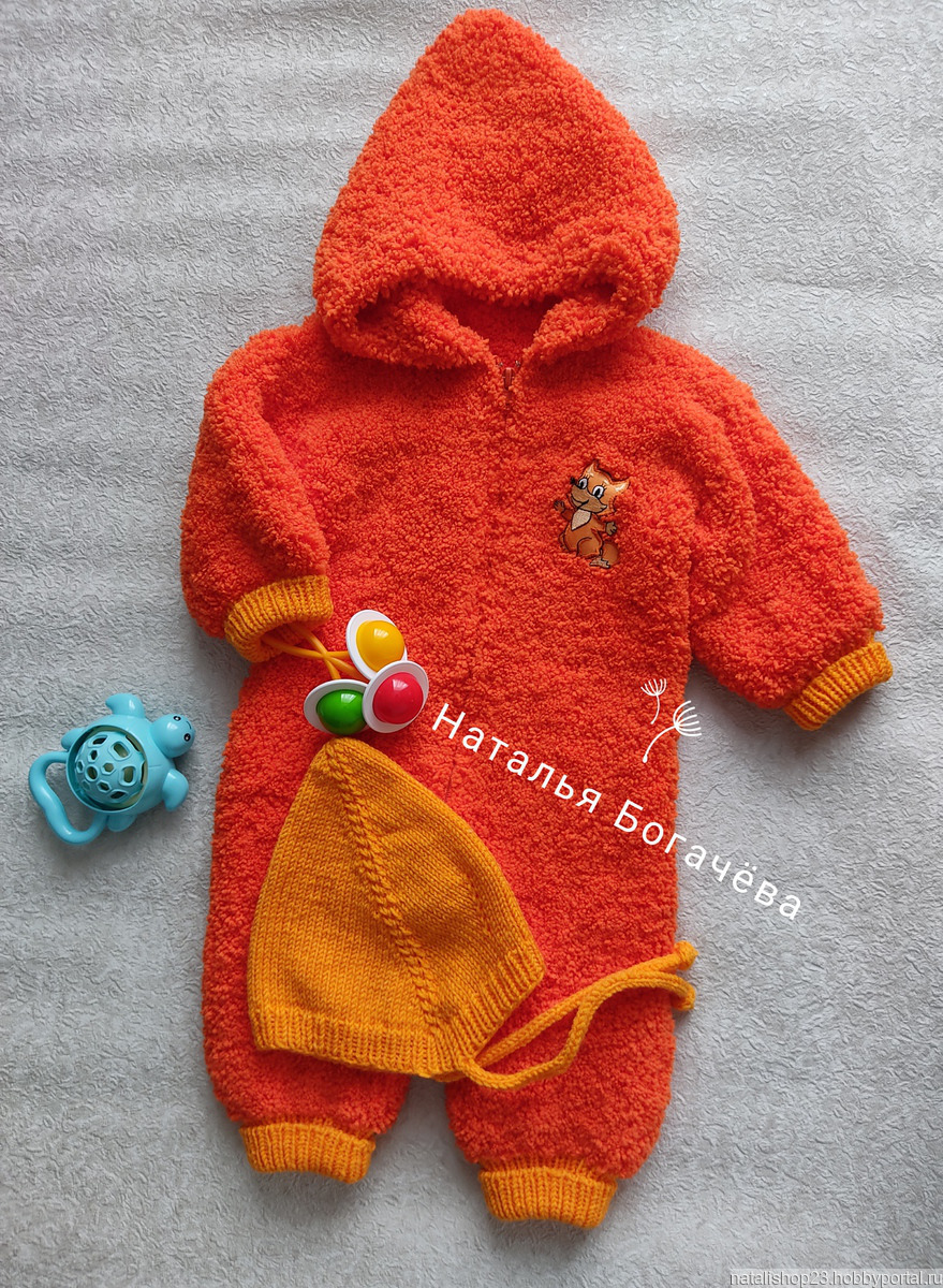 Комбинезон с шапочкой " Лисёнок", связан из импортной детской пряжи. Комбинезон очень теплый, мягкий. Застежка молния. Капюшон по головке малыша. Шапочка из мягкой, гипоаллергенной детской пряжи, цена 600 руб. Бамбук в составе пряжи придает шелковистость. Пинетки на заказ. Размер 68-74. Это -6-9 месяцев. Отворот манжет позволит увеличить размер.