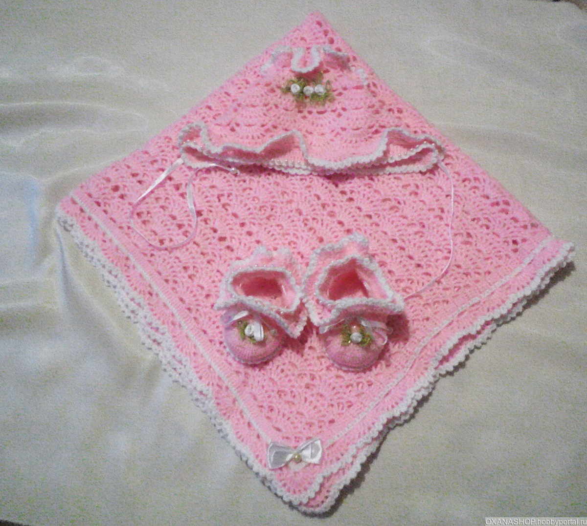 комплект на выписку для новорождённой девочки. выполнен из пряжи ПЕХОРКА ДЕТСКАЯ НОВИНКА, прекрасный подарок для маленькой принцессы и её мамы!