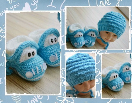 Комплект для новорождённого - пинетки, шапочка на завязках. На фото представлена работа из полушерсти, возможен вариант изготовления из мериноса