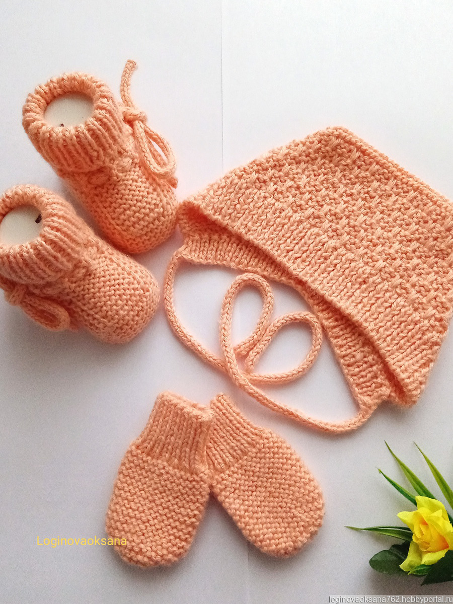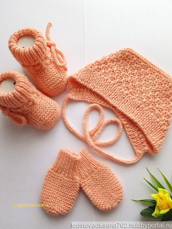 Комплект связан из детской пряжи для новорождённого, тёплый, мягкий и приятный к телу.