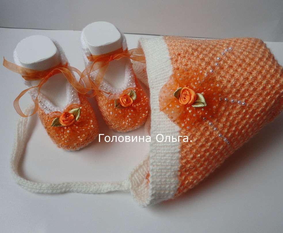 комплект для девочки, пинетки для девочки, комплект вязаный, чепчик вязаный, весна-лето
