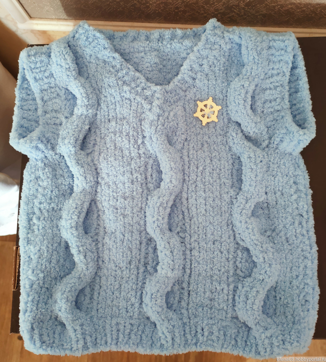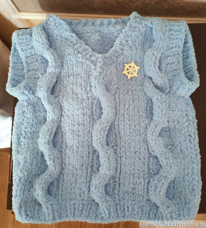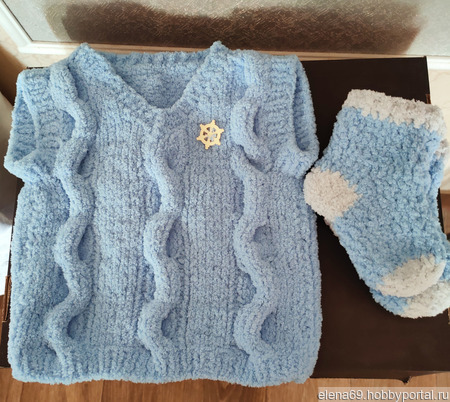 Комплект для мальчика на 6-9 мес состоит из 2х предметов. Жилет и носочки. Свяжу в любом цвете.