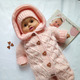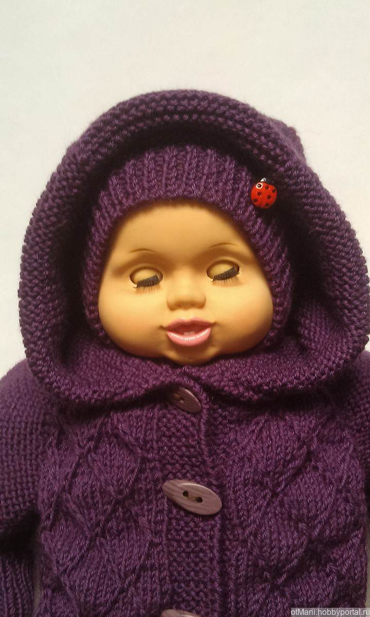 Комбинезон,шапочка и пинетки связаны из полушерстяной пряжи,в состав которой входит 50%мериносовая шерсть и 50%фибра.