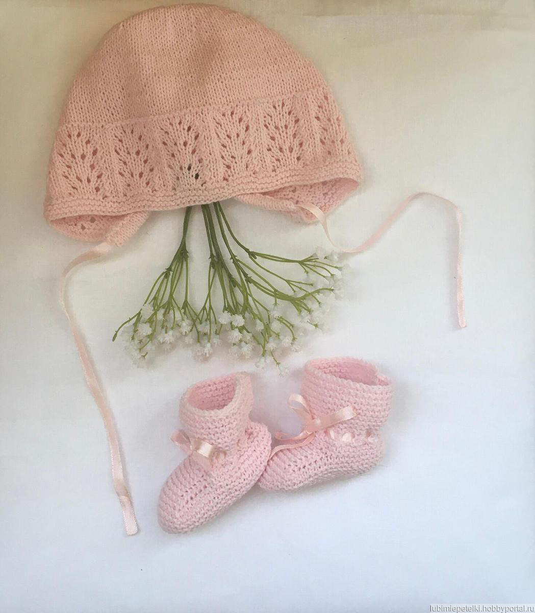 подарок девочке, пинетки малышам, розовый цвет, комплект на выписку, шапочка для новорожденной, комплект для новорожденой