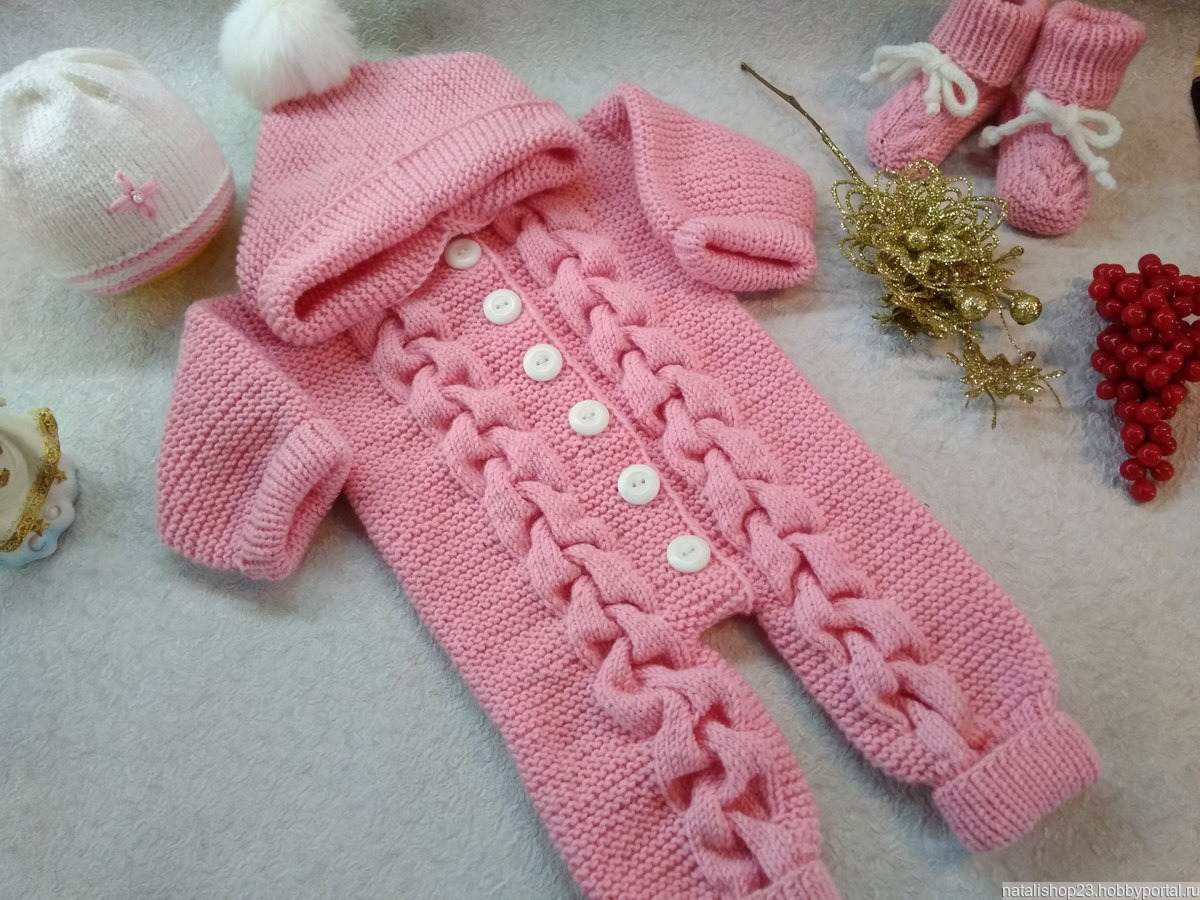 Комплект одежды для малышки состоит из комбинезона, 2 шапочек и пинеток. Использована пряжа бамбук с акрилом турецкого производства. Мягкий, удобный, красивый. Пряжа обладает антипиллинговым свойством, что позволит долго прекрасно выглядеть костюмчику. Комбинезон на пуговицах. вещи связаны без швов. Помпон отдельно, по желанию. Цена зависит от размера и пряжи. Продан!