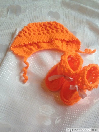 комплект для девочки выполнен крючком из детской пряжи оформлен атласной лентой и бусинами выполню в желаемом цвете