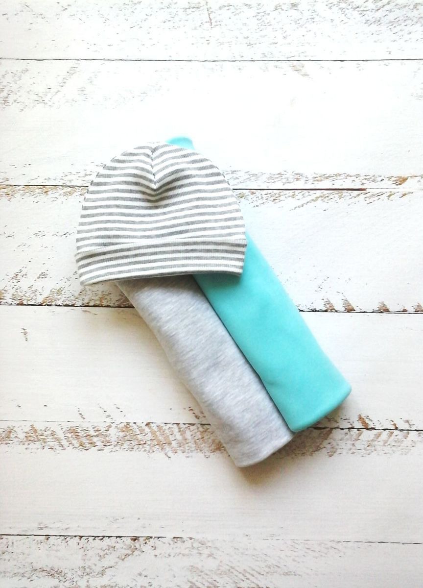 бирюзовый, однотонный, подарок малышу, подарок новорожденному, на выписку, шапочка для малыша, шапка в полоску, для фотосессии, полосатый, в роддом, в кроватку, в коляску, пеленание, беременность, скоро мама, серый меланж, трикотажная шапочка, пеленки, трикотажные пеленки, набор пеленок