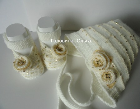 пинетки на ножку 9-9,5 см.чепчик на овал лица 31 см.