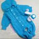 Комбинезон для новорожденного связан из полушерстяной пряжи для детского вязания на возраст 3-6 мес.Комбинезон с капюшоном,застежка на пуговицах,узор очень красивый и оригинальный