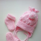Вязанный комплект выполнен из детской пряжи ,нежный и невесомый , без швов .
