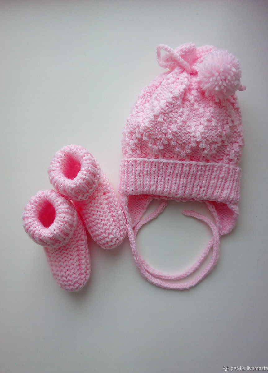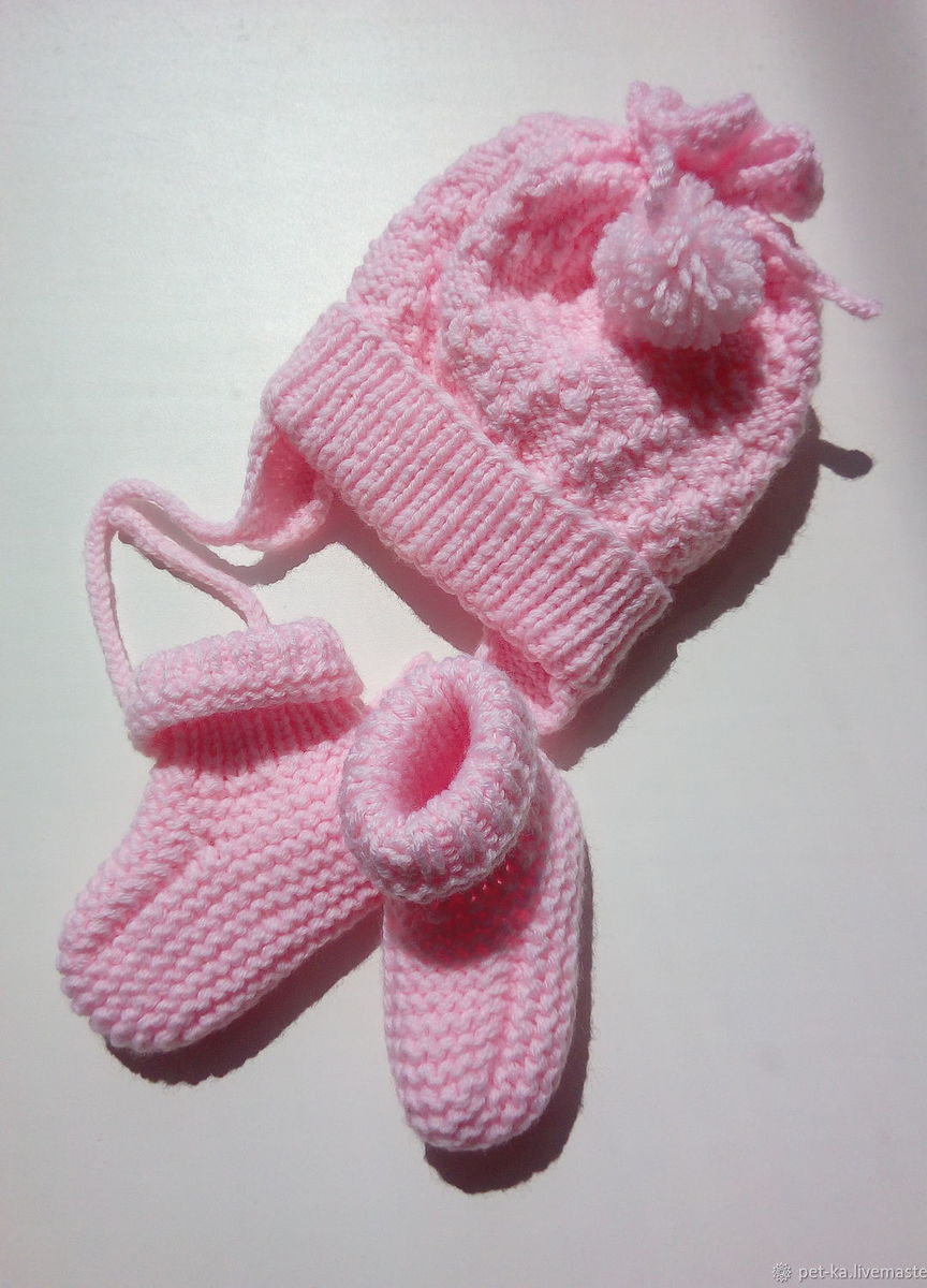 однотонный, подарок новорожденному, на выписку, для новорожденного, бледно-розовый, шапочка и пинетки, новорожденным, подарок будущей маме, первый подарок, первые пинетки, первая шапочка