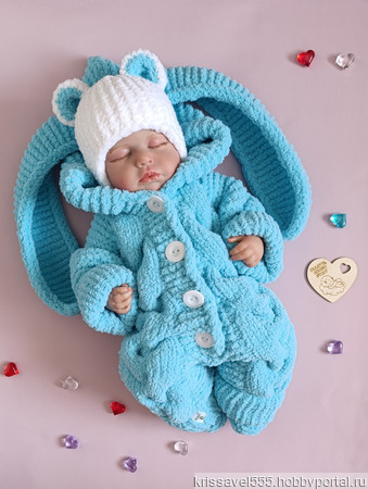 Комплект на выписку и для дальнейших прогулок, выполнен из детской гипоаллергенной плюшевой пряжи, без швов анатомической формы.