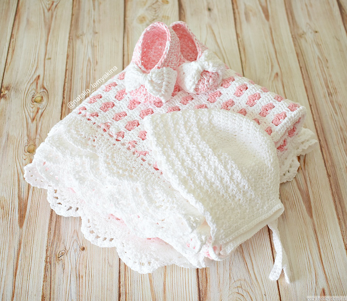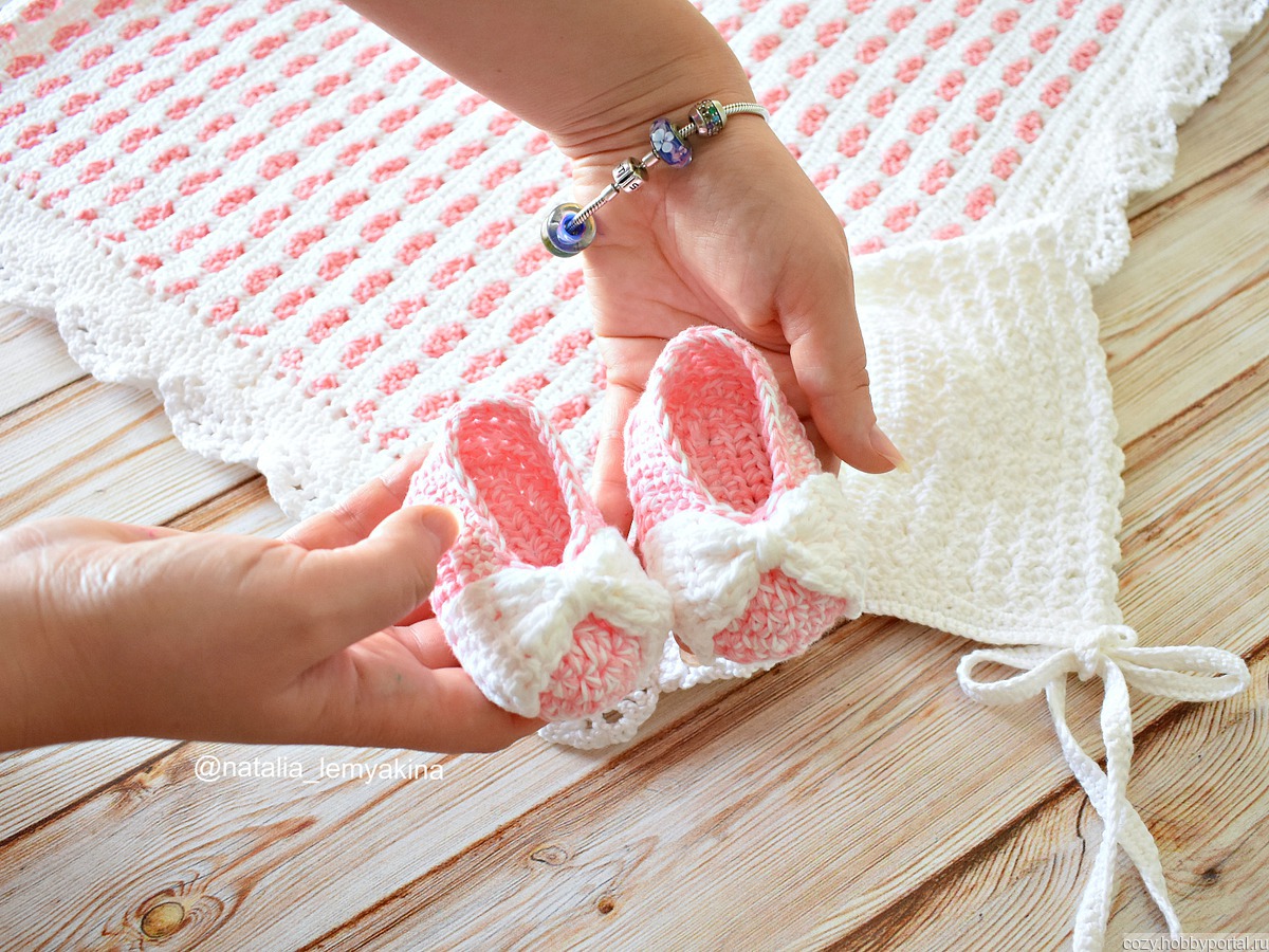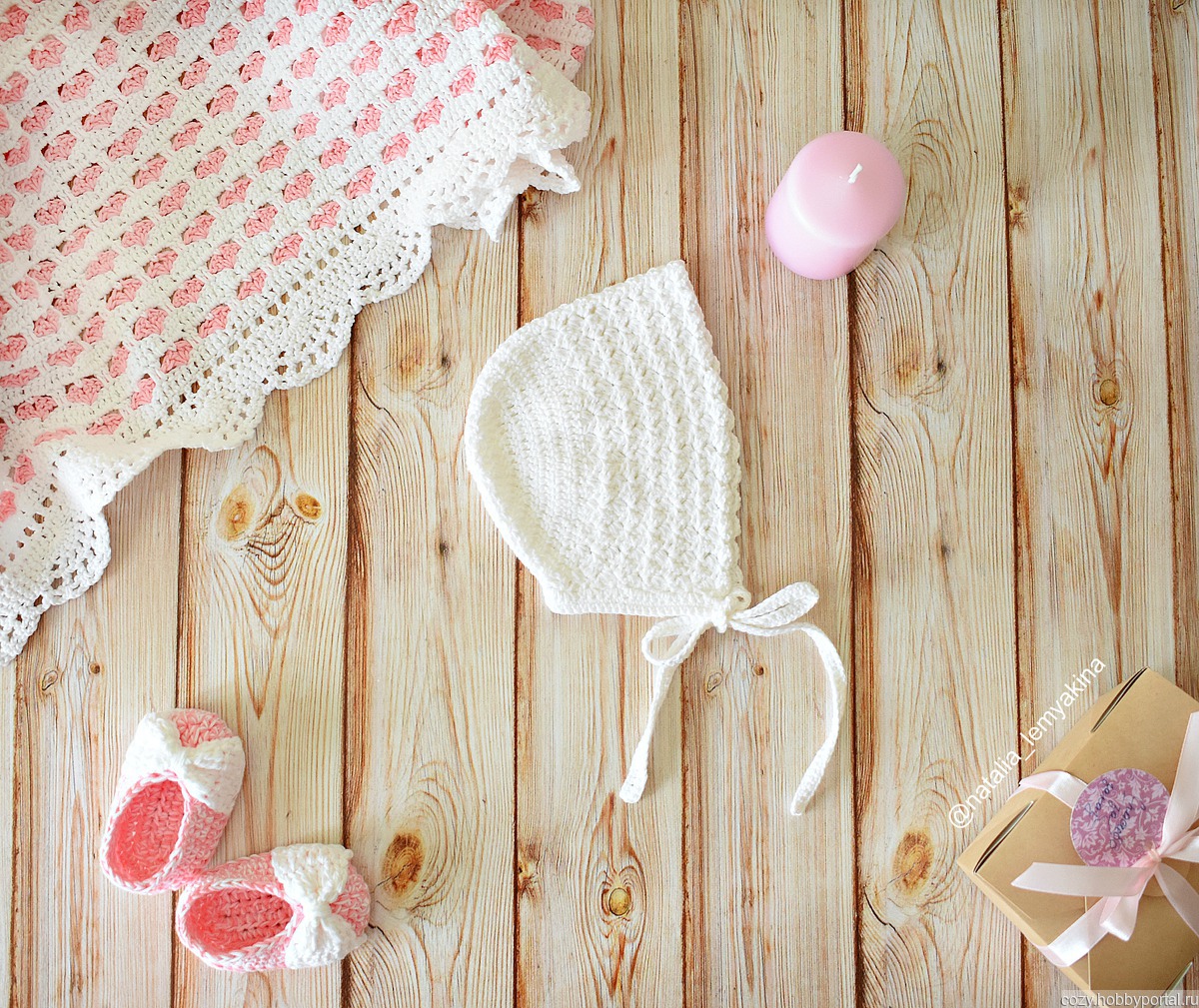 пинетки для девочки, комплект вязаный, пинетки для новорожденных, новорожденному, комплект на выписку, плед крючком, плед для малыша, плед в коляску, плед на выписку, чепчик на выписку, плед для девочки, плед в подарок