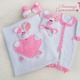 В комплект входит одеяло,комбинезон,шапочка и пинетки. В данном варианте одеяло будет использоваться именно как одеяло,в конвертах я располагаю аппликацию в уголке.