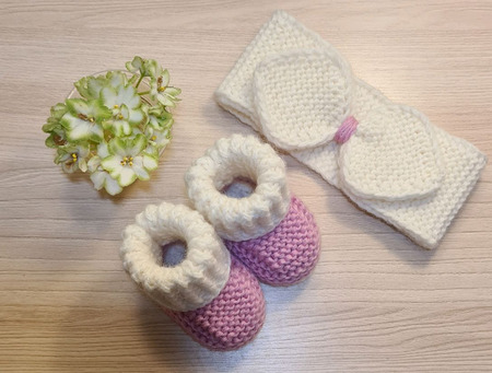 для девочек, пинетки вязаные, пинетки для новорожденных, повязка для девочки