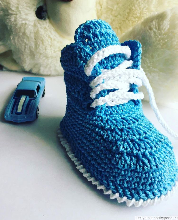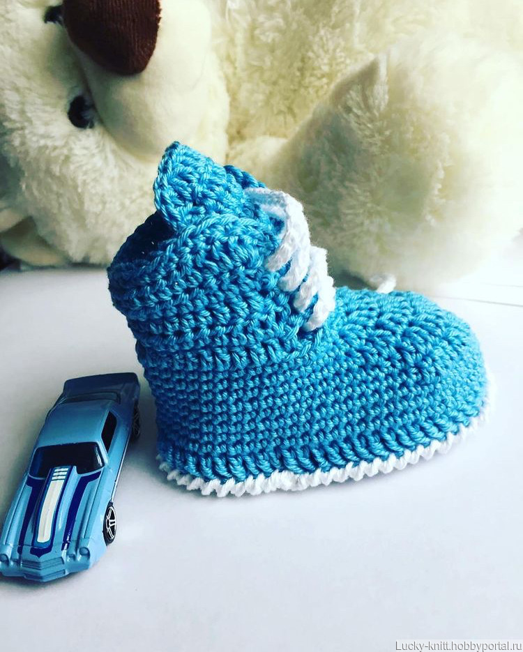 Пинетки-сапожки из хлопка. Подходят для всех (и для мальчика, и для девочки). Размер 10 см