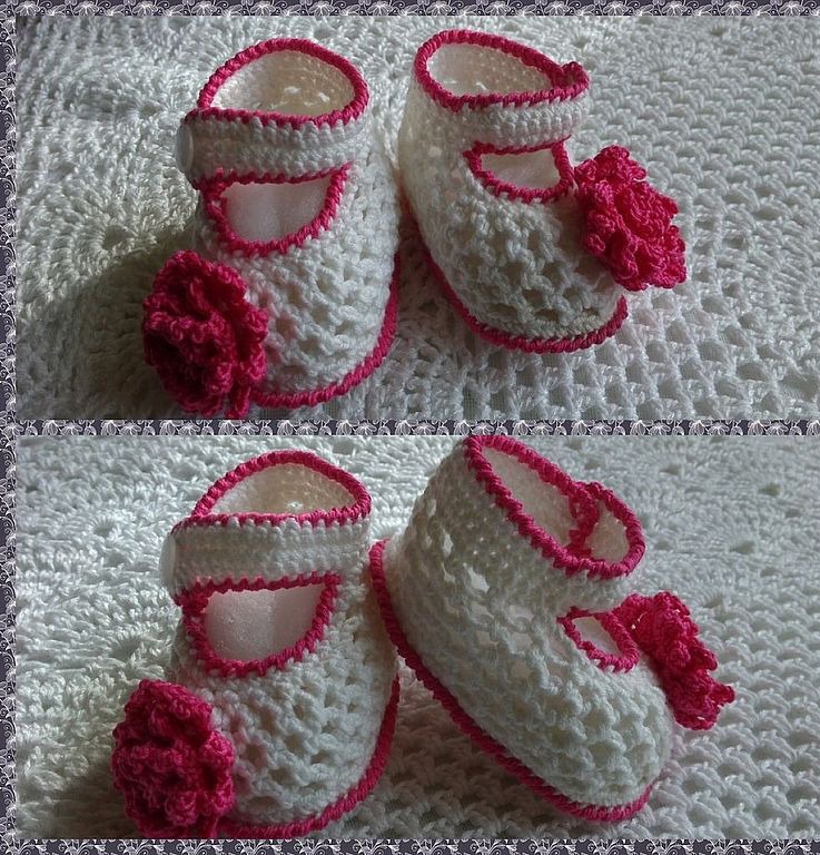 белый, пинетки вязаные, пинетки крючком, пинетки-туфельки, пинетки для новорожденных