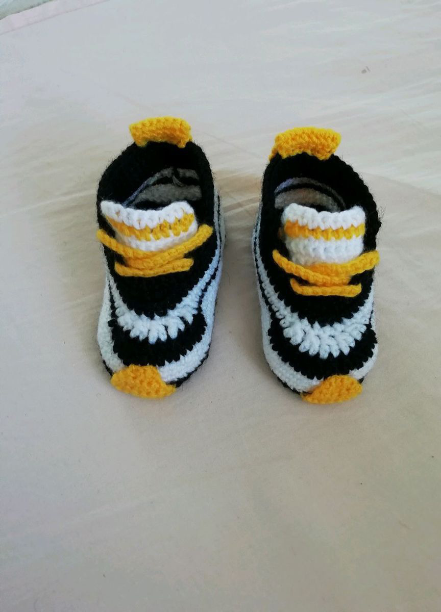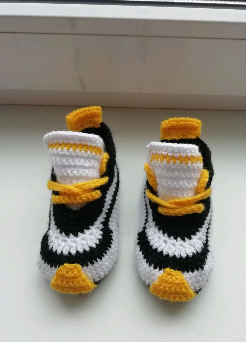 Кроссовки для будущих спортсменов. Связаны из мягкой шерсти. Прекрасно держатся на ножке благодаря шнурочкам. Есть в наличии на ножку размером 9-10 см. На заказ свяжу побольше. Кстати на 4-ом фото кроссики 12 см. Уже проданы. Цвета тоже можете придумать свои.