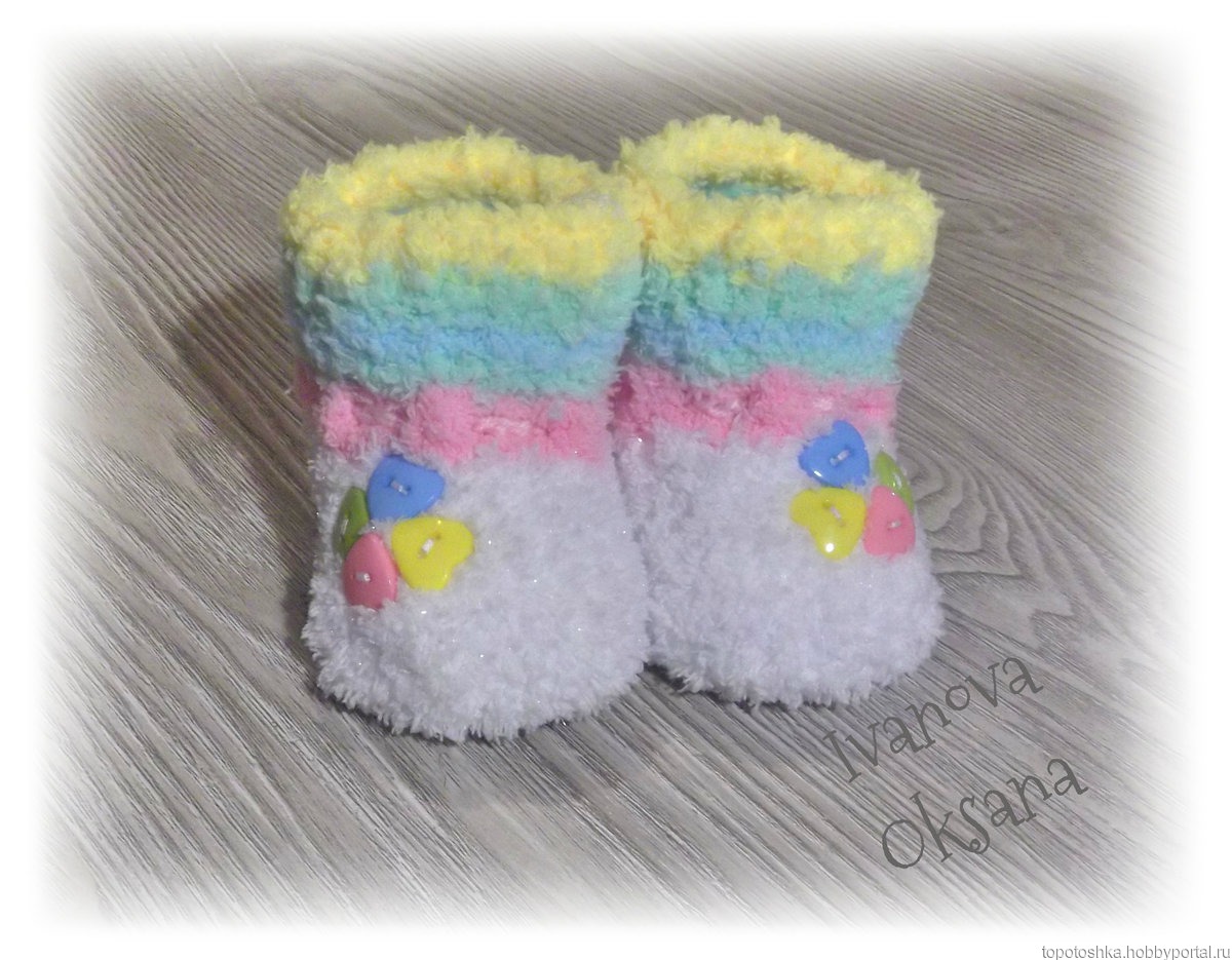 Теплые, мягкие, очень уютные пинетки связаны из супер-нежной плюшевой пряжи. Приятные и нежные на ощупь, детские пинетки позволят ребенку комфортно себя в них чувствовать. Обувая в них своего кроху, Вы всегда будете уверены в том, что его маленькие ножки находятся в тепле и безопасности.Пинетки фиксируются при помощи шнурка и имеют очень удобную застежку,которая не позволит спадать пинеточке с ножки малыша,и облегчит маме надевание на ножки.