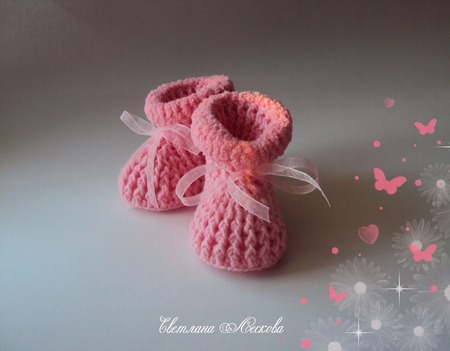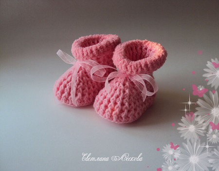 пинетки малышам, ручная авторская работа, пинетки в подарок, пинетки вязаные, пинетки для девочки, пинетки крючком, пинетки детские, пинетки для новорожденных, розовый цвет, купить недорого