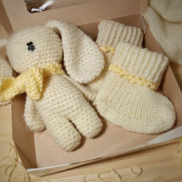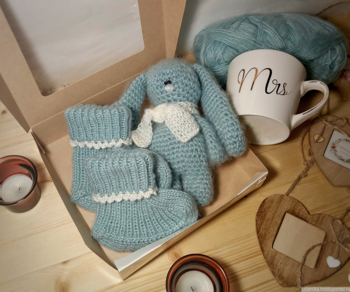 пинетки вязаные, для новорожденных, заяц вязаный, детский набор