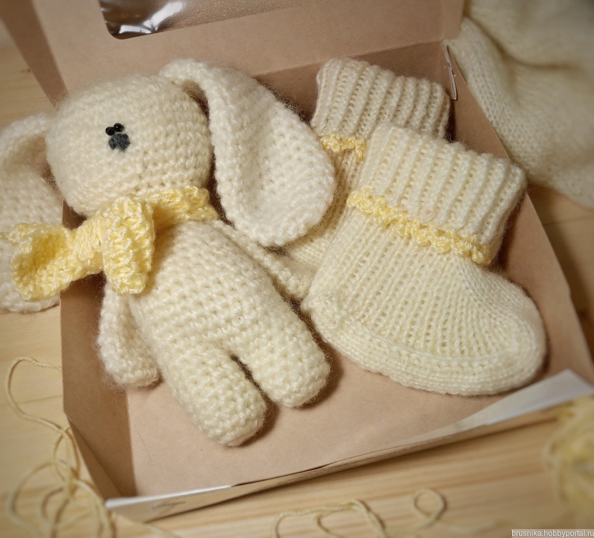 для новорожденного, пинетки вязаные, заяц вязаный