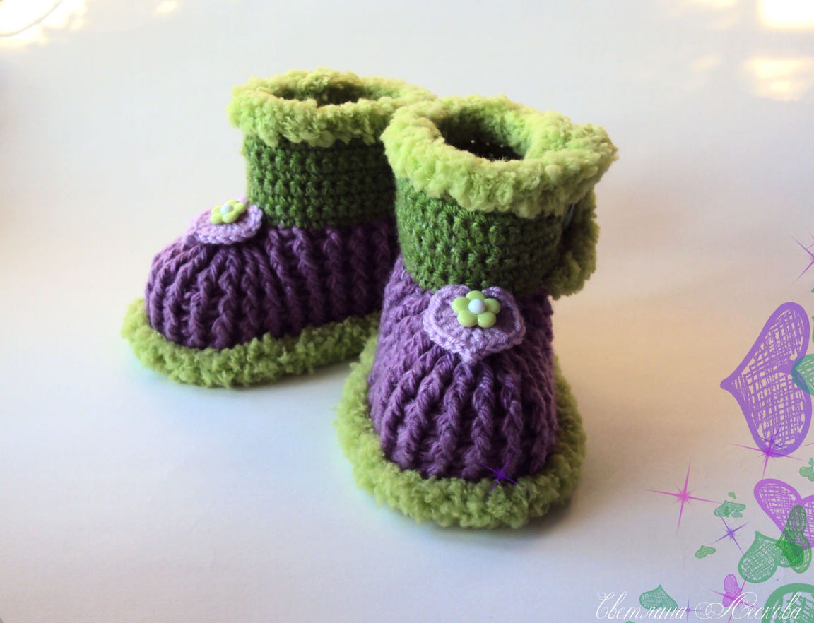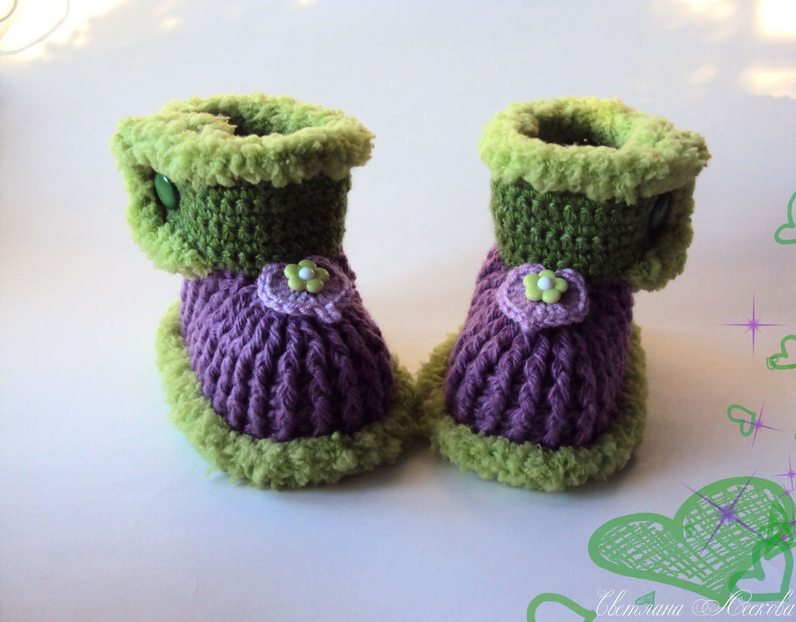 пинетки, фиолетовый, пинетки малышам, ручная авторская работа, пинетки в подарок, пинетки вязаные, пинетки для девочки, пинетки крючком, пинетки детские, оливковый, пинетки для новорожденных, пинетки сапожки, купить