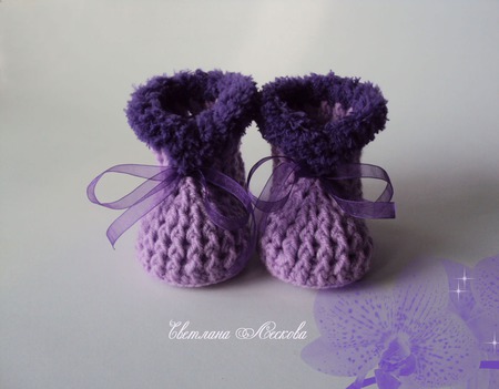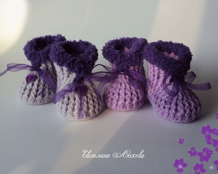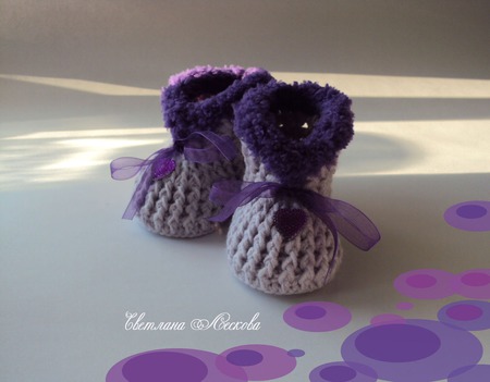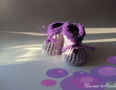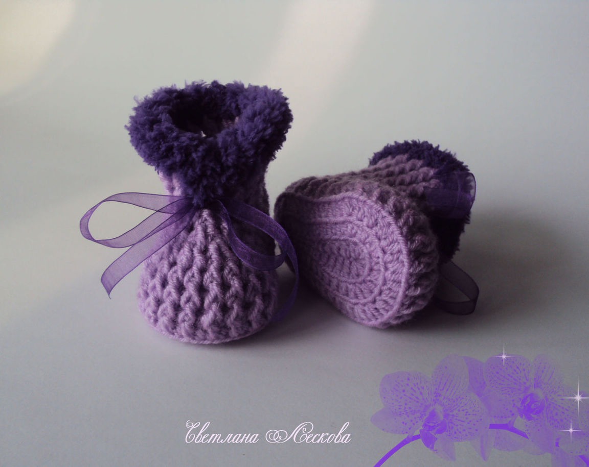 пинетки, фиолетовый, ручная авторская работа, сиреневый, пинетки в подарок, пинетки вязаные, пинетки для девочки, пинетки крючком, пинетки детские, пинетки для новорожденных, купить, купить недорого
