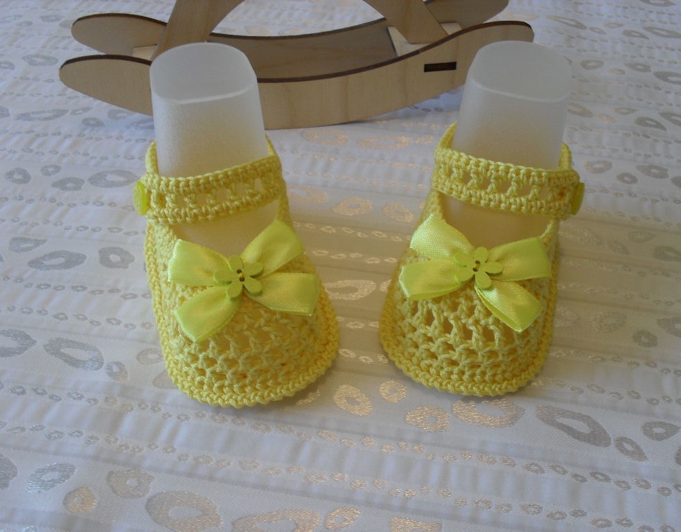 Ажурные летние Туфельки, связаны из хлопка.Туфельки станут модным аксессуаром и дополнят летний гардероб вашей Принцессы.Удобная застежка на пуговицу облегчит одевание пинеток, также можно регулировать объем ножки. Ажурные Туфельки отлично подойдут для подарка на рождение.Возможно исполнение в другом цвете и размере от 9 до 12 см. В наличии розовые по стопе на 9,5 см, св. розовые по стопе 10 см, желтые по стопе 9,5 см.