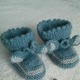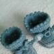 Пинетки связаны из пряжи мохер с акрилом, длина подошвы 13 см. Цвет серо голубой. Есть завязочки.