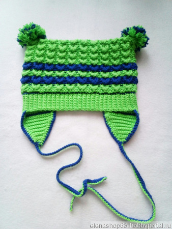 Авторская работа. Вязаная шапочка для новорожденных и малышей постарше ,с помпонами или кисточками может быть выполнена в 2-х вариантах: квадратной формы или оригинальной (3-х или 4-х угольной) формы, спицами или крючком, различными узорами в любой цветовой гамме. За счет ушек и завязок шапочка надежно фиксируется на головке ребенка.