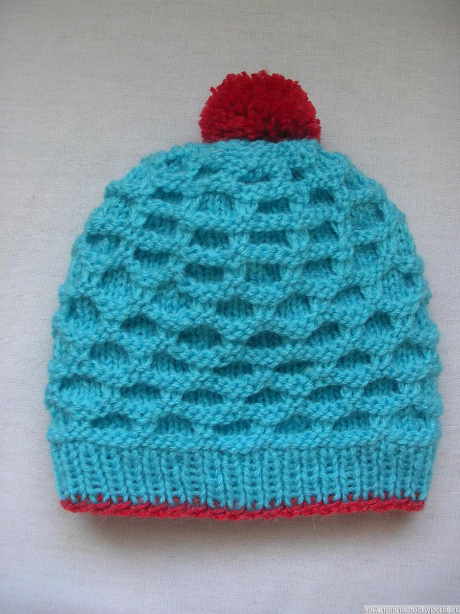 шапка с помпоном, шапка детская, весенняя шапочка, шапочка вязанная, яркая шапочка, шапочка для норожденного, бирюзовая шапочка