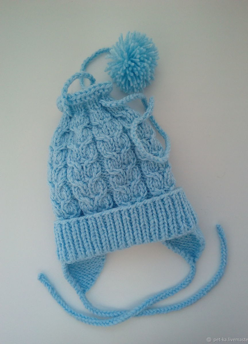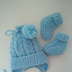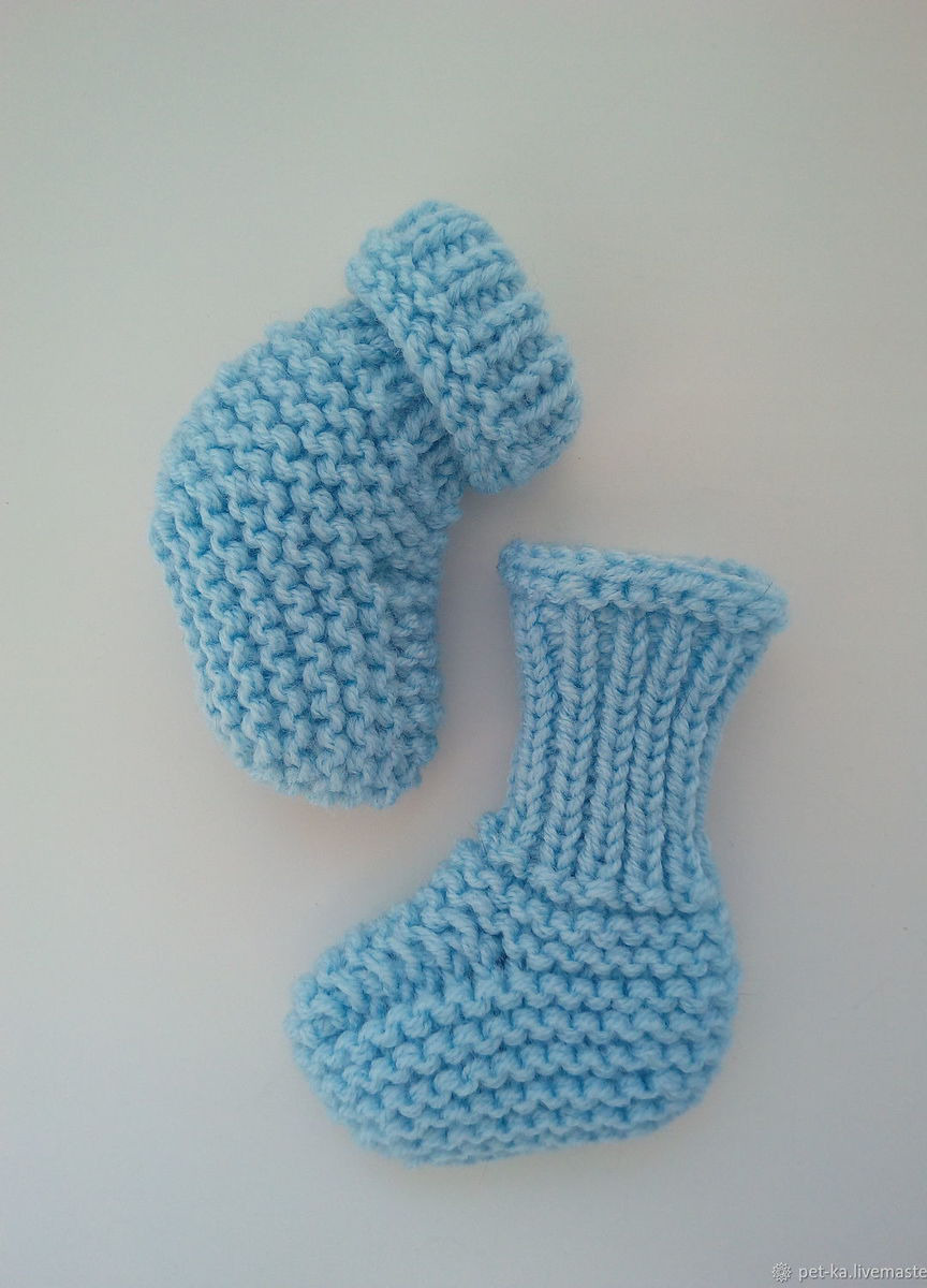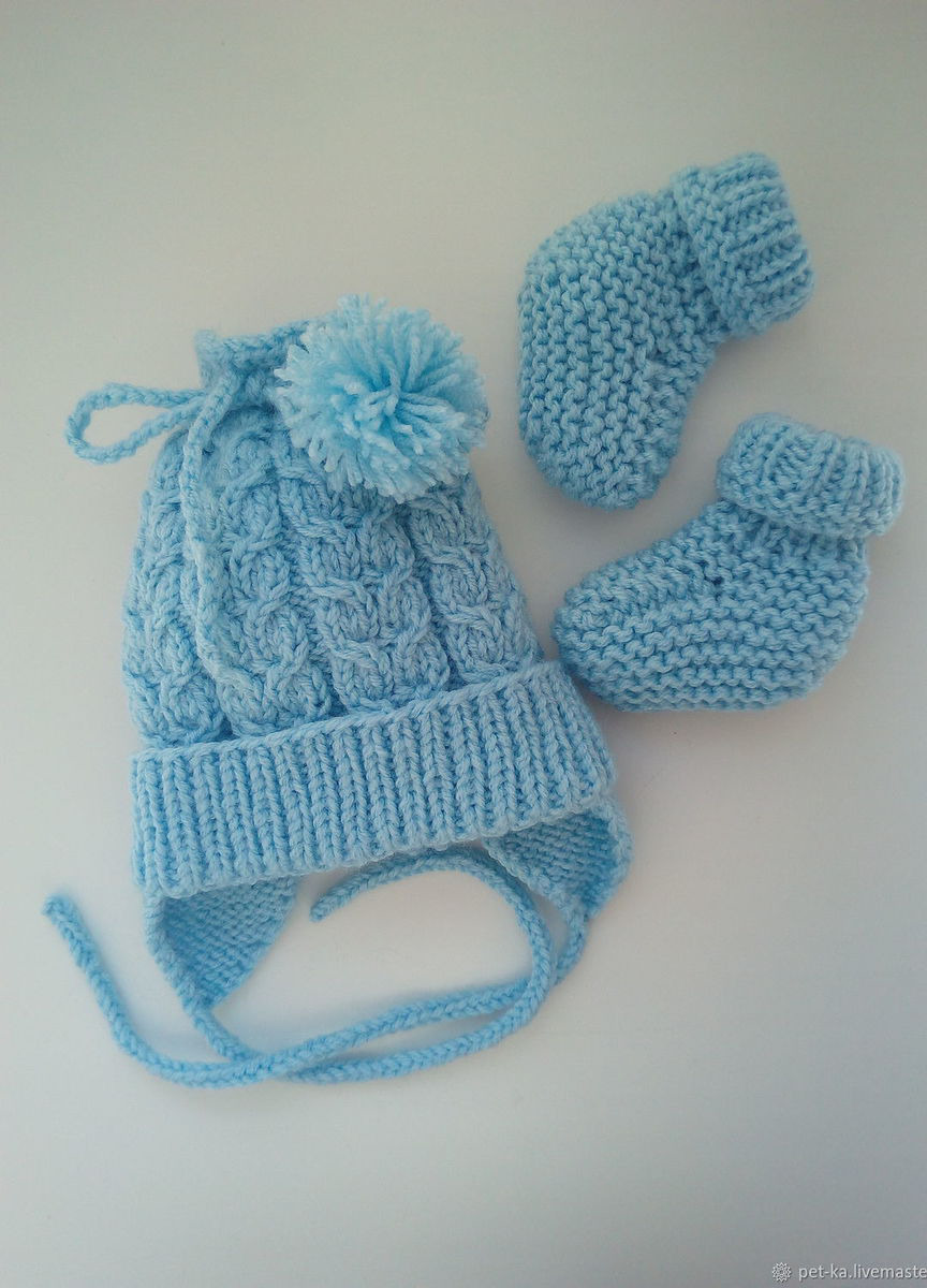 голубой, подарок новорожденному, пинетки вязаные, шапочка для малыша, для новорожденных, шапочка с ушками, вязанная шапочка, комплект на выписку, шапочка и пинетки, на выписку из роддома, на выписку мальчику, на выписку для девочки, подарок будущей маме, вязанные шапочка и