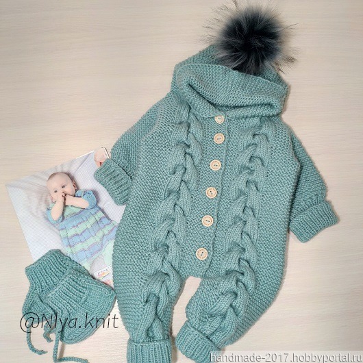 комбинезон, комбинезон вязаный, комбинезон для малыша, комбинезон для мальчика, комбинезон для девочки, комбинезон детский, комбинезон спицами, комбинезон с капюшоном, комбинезон с помпонами, царапки для новорожденных, царапки для малышей