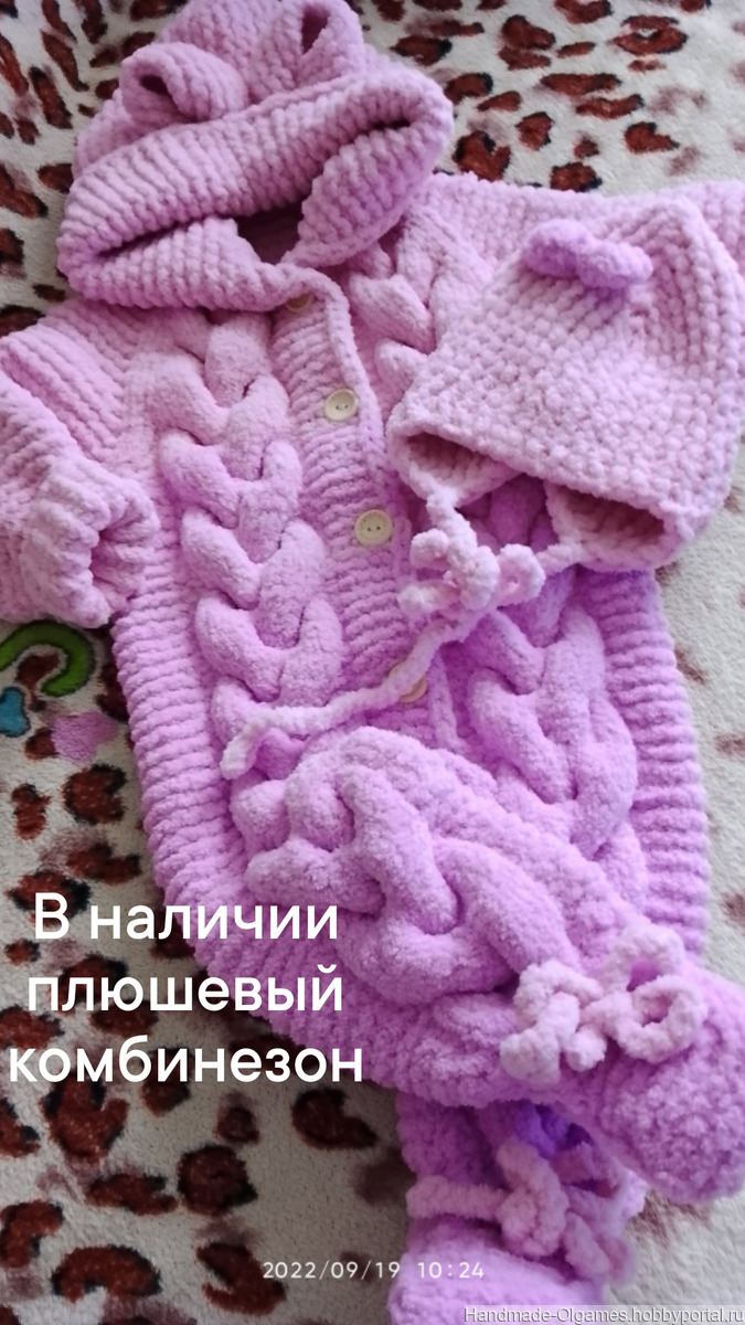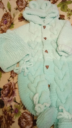 Продам новые вязаные плюшевые комбинезоны для девочки и мальчика. Ручная работа. Размер от 0 до 4-5 месяцев. Связан из детской гипоаллергенной плюшевой пряжи. Выполню работу в любой цветовой гамме.
