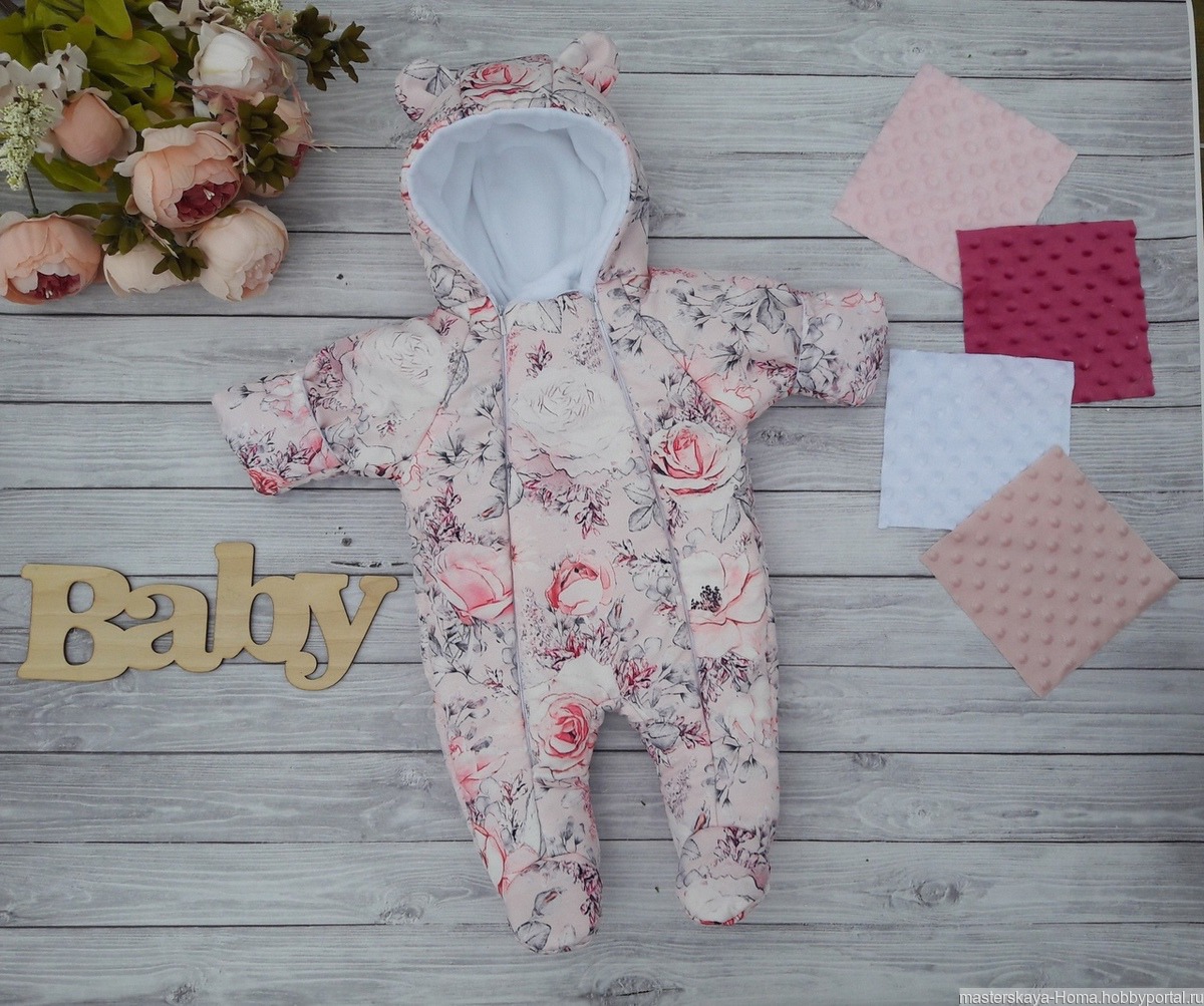 Комбинезон 62 размера выполнен из ткани дюспо (верх), флис антипилинг (подклад), наполнитель - альполюкс Комбинезон подойдет как на выписку малыша, так и просто для прогулок