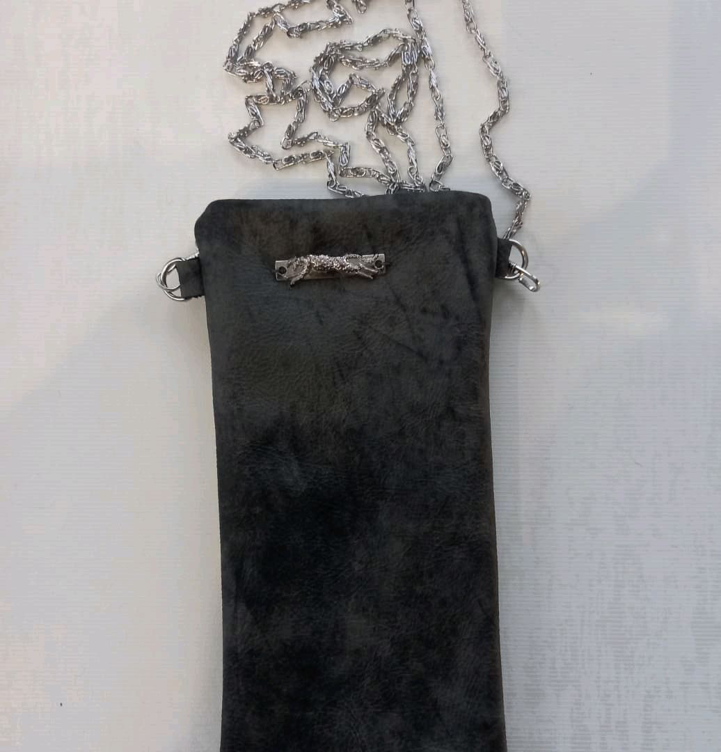 Мини сумочка чехол для телефона из серой мраморной кожи