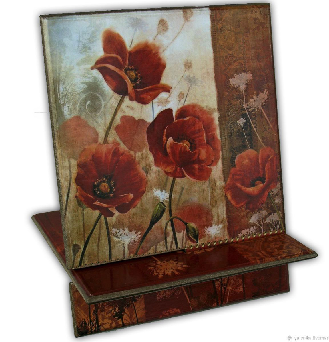 Подставка для планшета, смартфона или электронной книги. Аксессуар двусторонний, благодаря чему можно менять дизайн лицевой части подставки. В разобранном виде вертикальная деталь - 18 X 14 см. "нога" - 14 X 14 см.