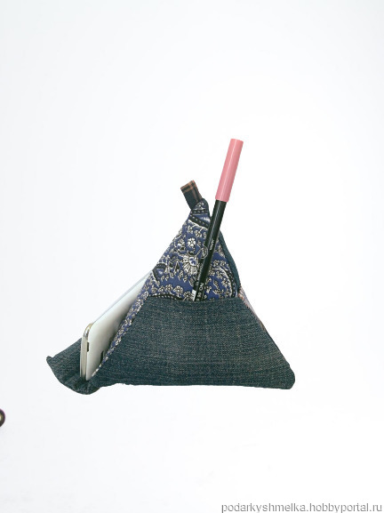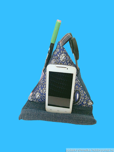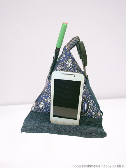 Объемная 3 D подставка под телефон имеет по бокам карманы, в которые можно положить зарядку, наушники, чтобы все было в одном месте. Рукодельницы используют карманы подставки для ножниц, маркеров, карандашей, линеек. Кроме этого подставку можно использовать как огромную игольницу. Или как мини органайзер на столе для телефона, очков, блокнота и ручки. Текстильная"губа", расположенная на передней панеле подставки не позволяет телефону съезжать . Подставка объемная, но легкая. Петля сверху подставки позволяет с легкостью перемещать ее в любое место.