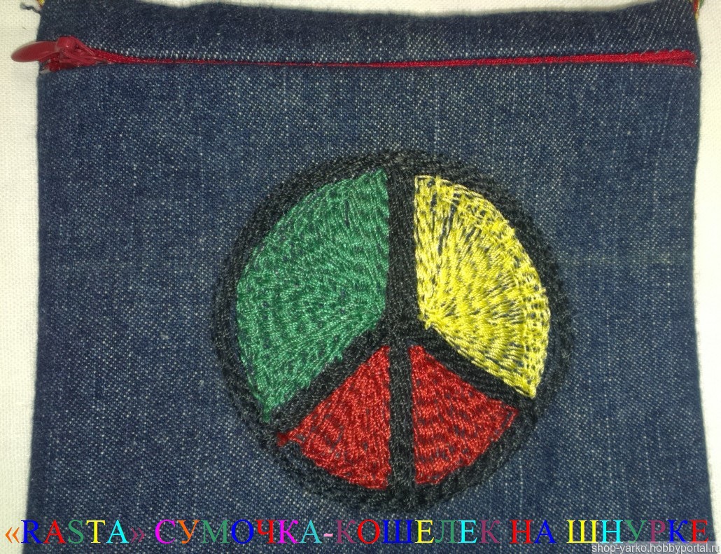 Сумочка выполнена из джинсовой ткани с вышивкой на швейной машине в свободной технике.