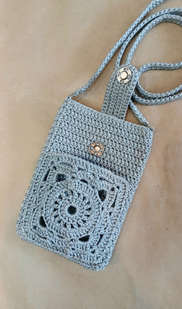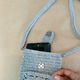 Вязаная маленькая сумочка через плечо — отличный аксессуар. Несмотря на небольшие размеры в ней можно разместить телефон, ключи и другие необходимые мелочи. Есть кармашек.