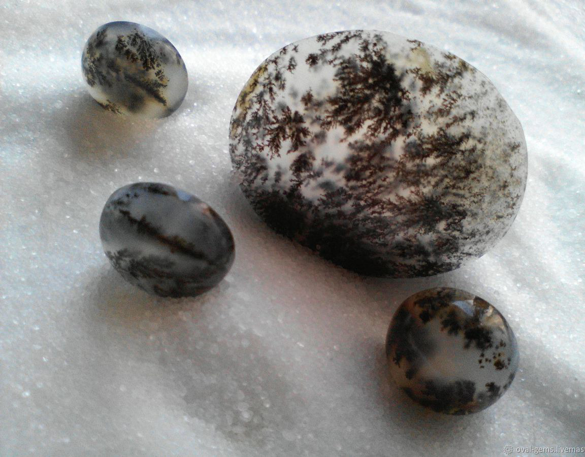 Комплект из 4-х кабошонов мохового агата. Можно использовать для изготовления ювелирных изделий - 690 руб.