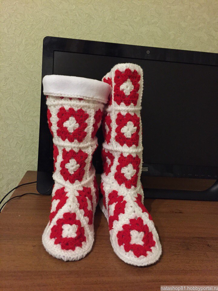 Домашние высокие сапожки на войлочной подошве с флисовым утеплителем.Такие сапожки станут оригинальным и полезным подарком на любой праздник.