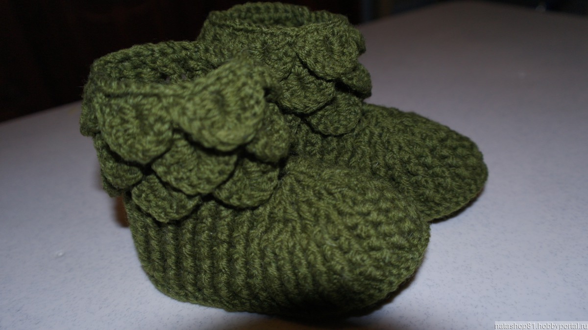 Пинетки детские из теплой шерстяной пряжи. Подошва 14 см